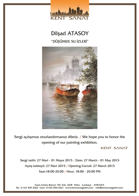 Galerimizde sergilenen Dilşad ATASOY "Düşümde Su İzleri" adlı sergi 27 Mart / 01 Mayıs 2015 süresince ziyarete açıktır.